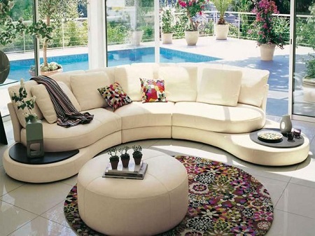 اگر فضای کافی برای استفاده از مبلمان گرد ندارید میتوانید از مبل نیم دایره استفاده کنید. باز و بسته بودن این مبل ها با توجه به شعاع نیم دایره بسیار متفاوت است و گاهی فقط گوشه هایی گرد دارند و بنابراین جای کمتری اشغال میکنند. و به راحتی میتوانید از دو مبل نیم دایره روبه روی هم استفاده کنید.