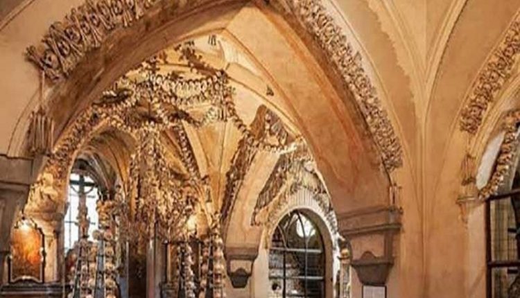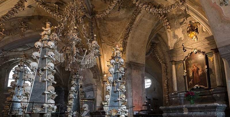 کلیسای استودان سدلک با تزئیناتی از استخوان انسان