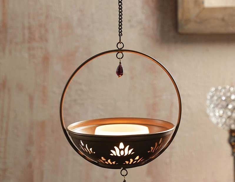 شمع‌ها را به سقف آویزان کنید. لوسترها و آویزهای شیک و جذاب را انتخاب کنید.