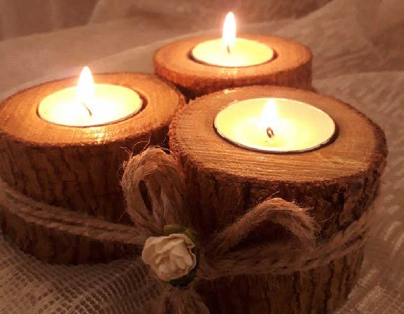 اگر می‌خواهید منزل خود را به سبک روستیک طراحی کنید، شمع‌آرایی به سبک روستیک را فراموش نکنید. می‌توانید از چوب خام برای شمع آرایی در منزل استفاده کنید.