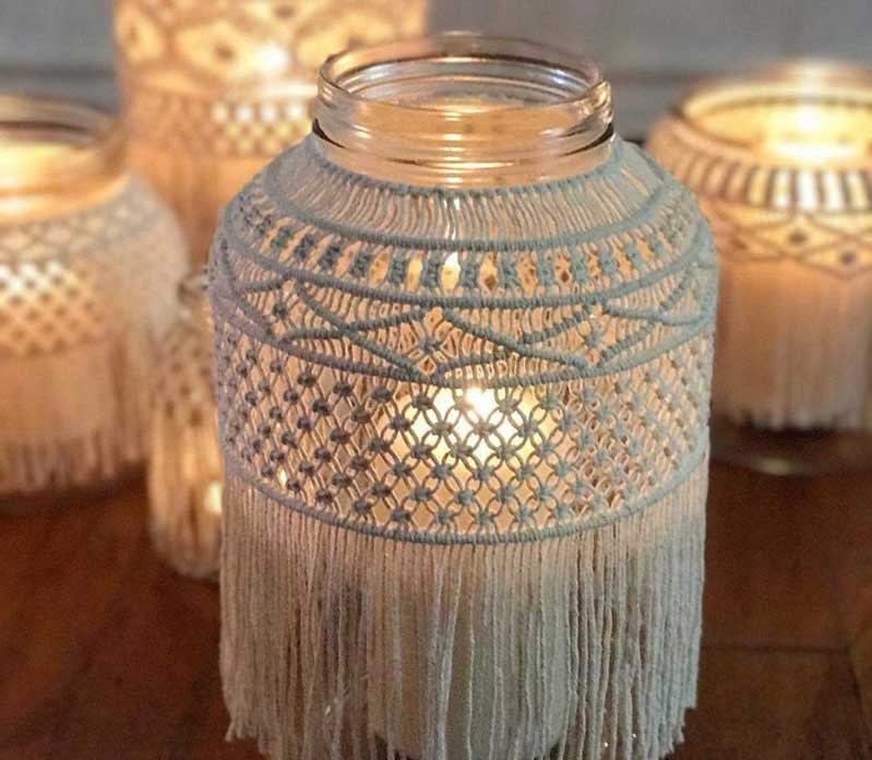 اگر به سبک بوهمین علاقه‌مند هستید، از بوم‌ریس هم در شمع‌ آرایی منزل خود استفاده کنید. شمع‌ها را به بوم‌ریس وصل کنید تا به دیوار نصب شوند، برای شمع آرایی در منزل می‌توانید از مکرومه‌بافی هم استفاده کنید، شمع‌ها را در آویزهای مکرومه بگذارید.