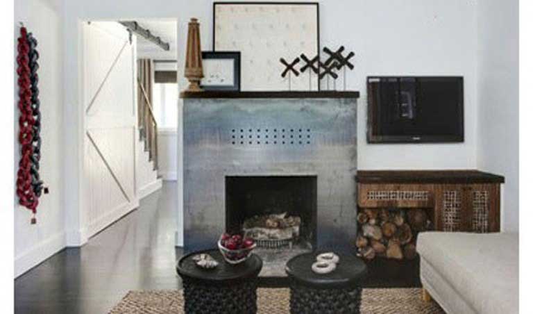 ۷- از فلزاتی که مشبک هستند و طرح های زیبا روی آن برش خورده است، می توان به عنوان دیواره خارجی شومینه نیز استفاده کرد.