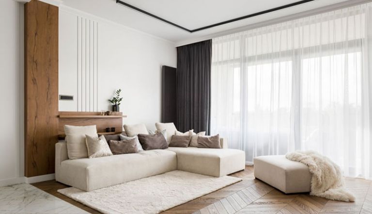 بهتر است رنگ پرده یا سایر پارچههای استفاده شده در اتاق نشیمن به رنگ روشن یا سفید باشد. اگر دوست ندارید فضای نشیمن شما رنگ پریده به نظر برسد، بدون حذف رنگ در بخشهای دیگر، تنها پردهها را به رنگهای روشن یا سفید انتخاب کنید.