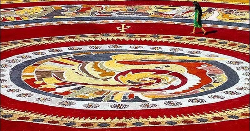 طی هفت دوره، فرش خاکی توسط جمعی از هنرمندان در یکی از سواحل جزیره هرمز اجرا شد. در این رویداد هنرمندان بومی با خاکهای رنگی موجود در جزیره، طرح فرش خاکی را بر ساحل گستراندند.