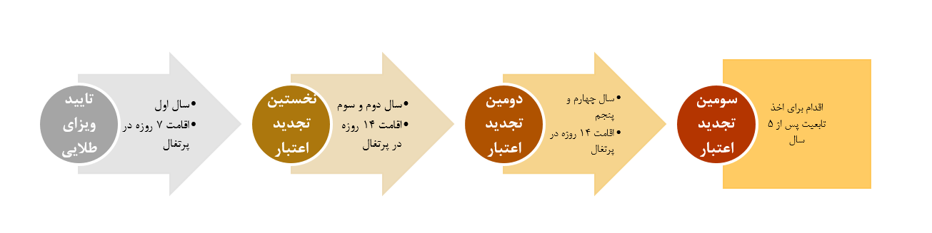 مدت زمان اقامت در پرتغال: حداقل ۷ روز در سال اول و ۱۴ روز در سالهای بعدی