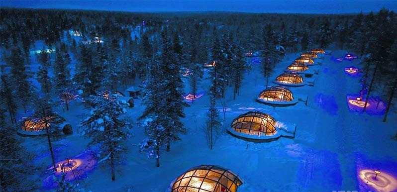 یکی از مکان های عجیب و البته زیباترین هتل‌های دنیا، در فنلاند و در ۱۵۵ مایلی شمالی دایره قطب شمال، قرار دارد. این هتل شبیه خانه‌های یخی قطبی،‌ ساخته شده است. هتل‌های شیشه‌ای در محیطی فوق‌العاده سرد و برفی با چشم‌انداز زیبای آسمان قرار دارند که به طور حیرت‌انگیزی جذاب است.