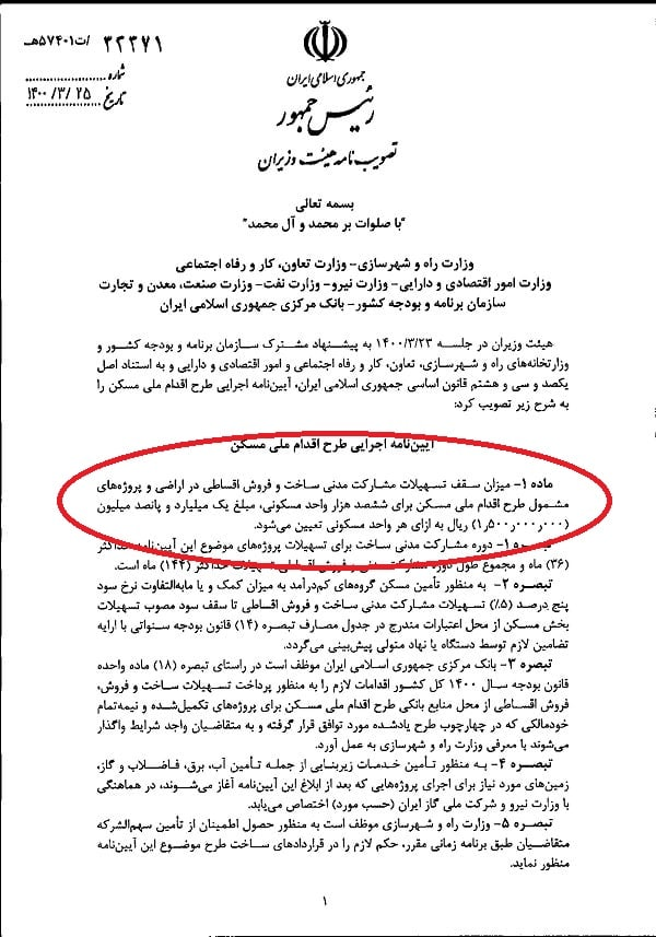آئین نامه طرح ملی مسکن: سقف وام مسکن ملی؛ ۱۵۰ میلیون تومان
