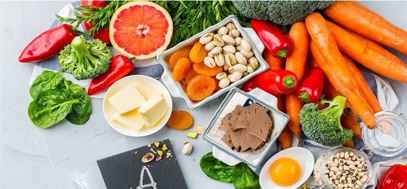 ویتامین A برای حفظ و تقویت بینایی ضروری است. کمبود ویتامین A می‌تواند منجر به شب کوری شود. ویتامین A همچنین از عملکرد قرنیه که لایه محافظ خارجی چشم است، پشتیبانی می‌کند. فردی که کمبود ویتامین A دارد، چشمانش رطوبت کمی تولید می‌کند.