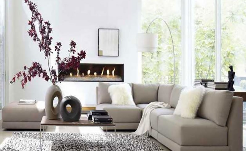 روش اول: فرش را طوری قرار دهید که قسمت جلوی مبل روی فرش قرار بگیرد