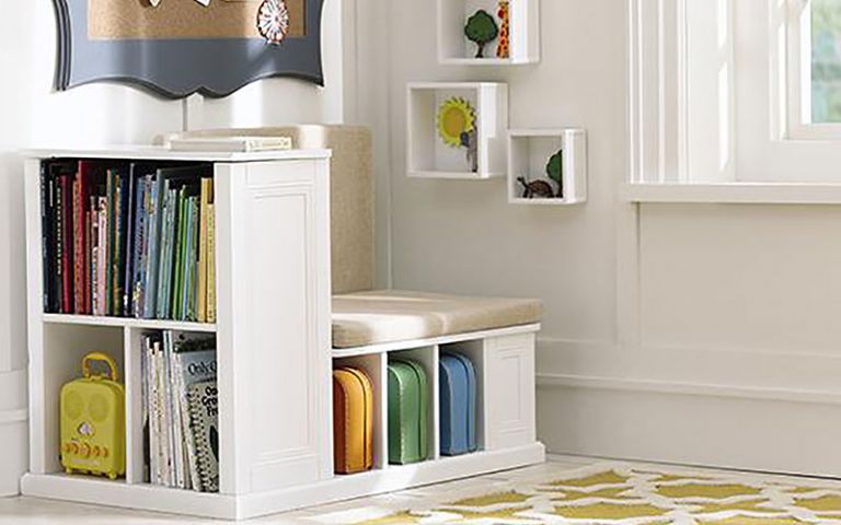 اگر در ابتدای ورودی خانه شما یک فرو رفتگی وجود دارد میتوانید در این فضا چند طبقه شلف در کنار نیمکت و حتی بالای سر آن یا در زیر آن، قرار دهید و تعداد زیادی فضای مفید برای کیف و کفش و لباسهایی که دائما در حال استفاده از آنها هستید، ایجاد کنید.