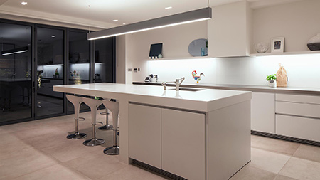 حتما در نظر داشته باشید که در نورپردازی فضای آشپزخانه از چراغ های بدون فلیکر و با شاخص نمود رنگ بالا استفاده نمایید. مورد اول برای جلوگیری از خستگی چشم افراد حاضر در آشپزخانه و مورد بعد برای نمایش رنگ واقعی مواد غذایی در زیر نور چراغ.